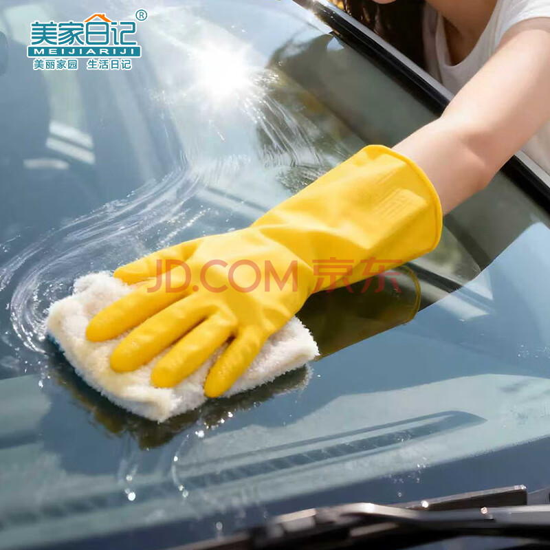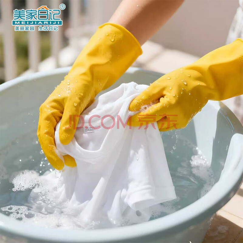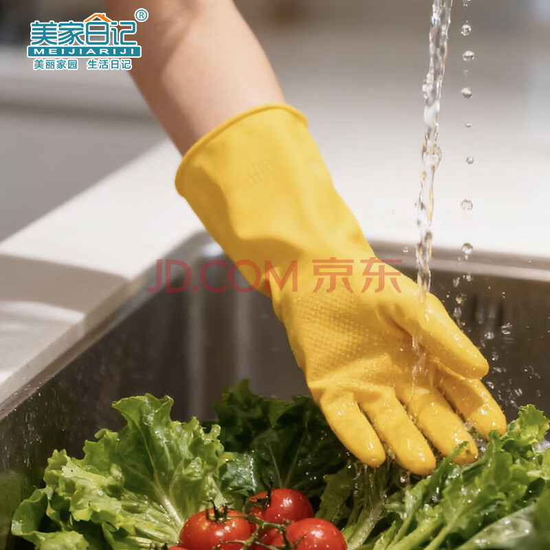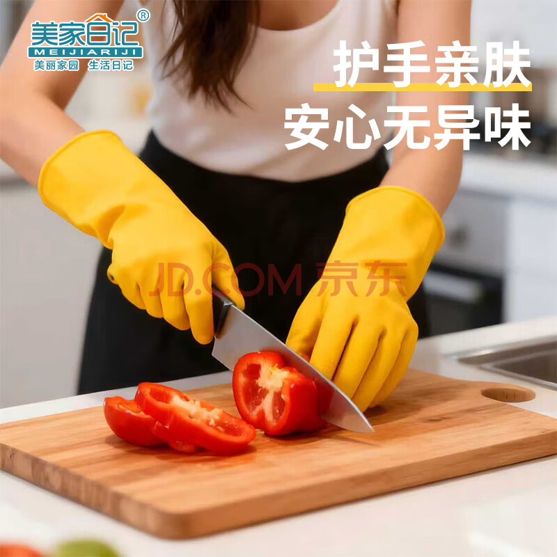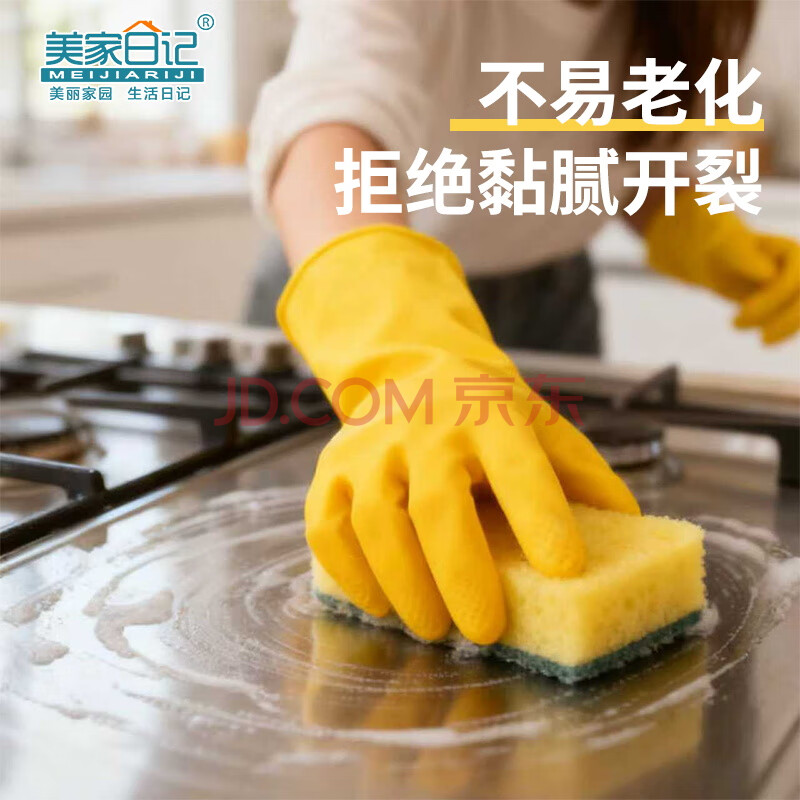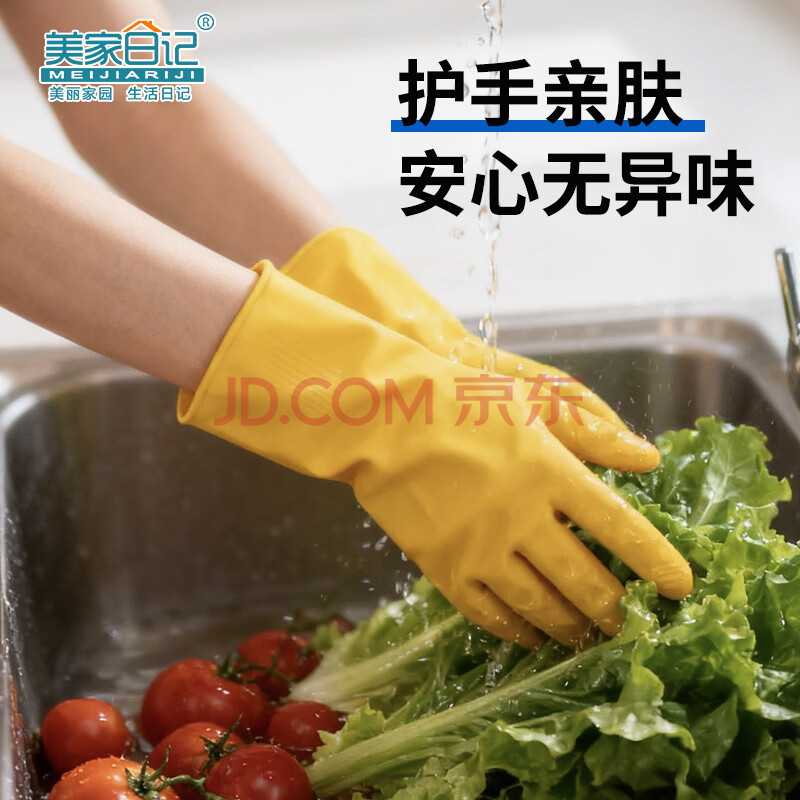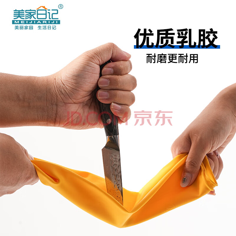 商品相册:美家日记加厚乳胶牛筋手套 L号2双装 家务橡胶洗碗手套 物业保洁胶皮手套第