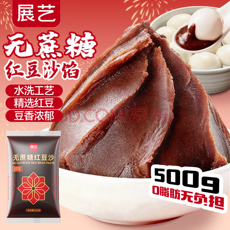 商品相册:展艺无蔗糖红豆沙馅 糕点馅料青团甜品包子豆沙包蛋黄酥烘焙原料 500g第