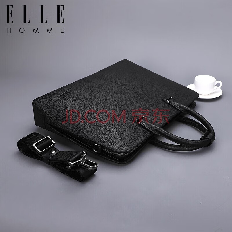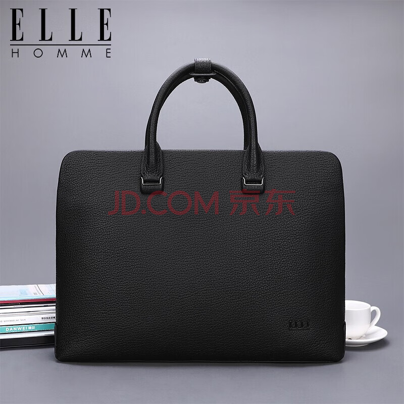 商品相册:ELLE HOMME男士商务公文包 轻奢头层牛皮手提包 大容量单肩斜跨包休闲电脑包EA188205910黑色第