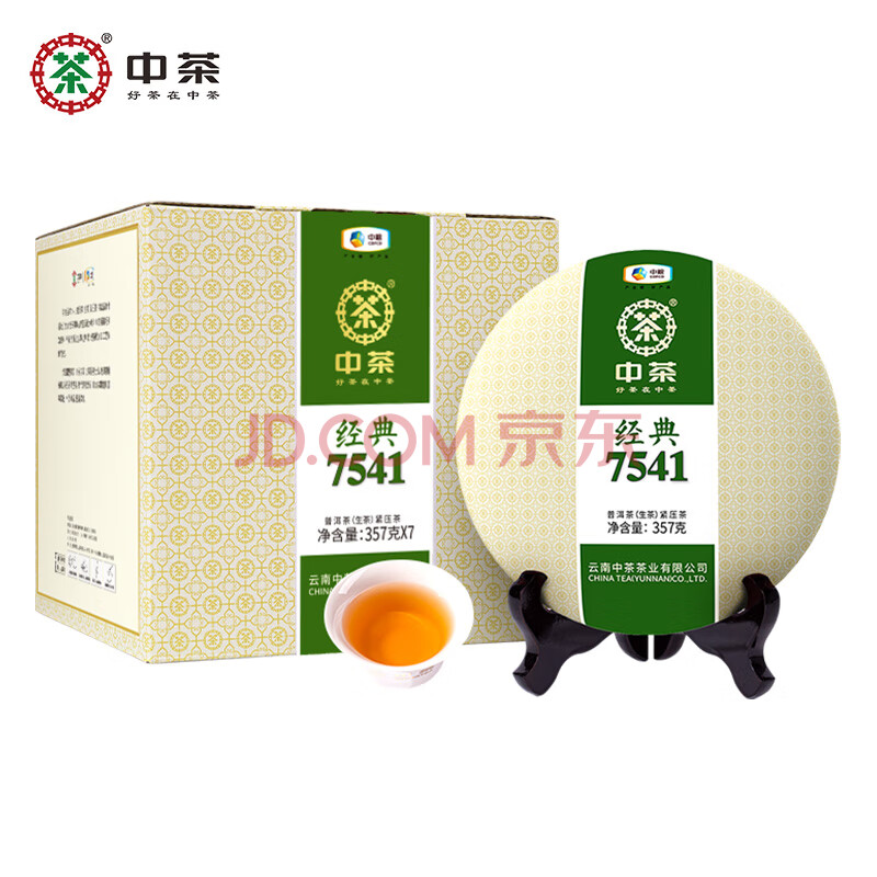 商品相册:中茶茶叶普洱茶云南普洱经典7541生普生茶茶饼357g*7饼整提第