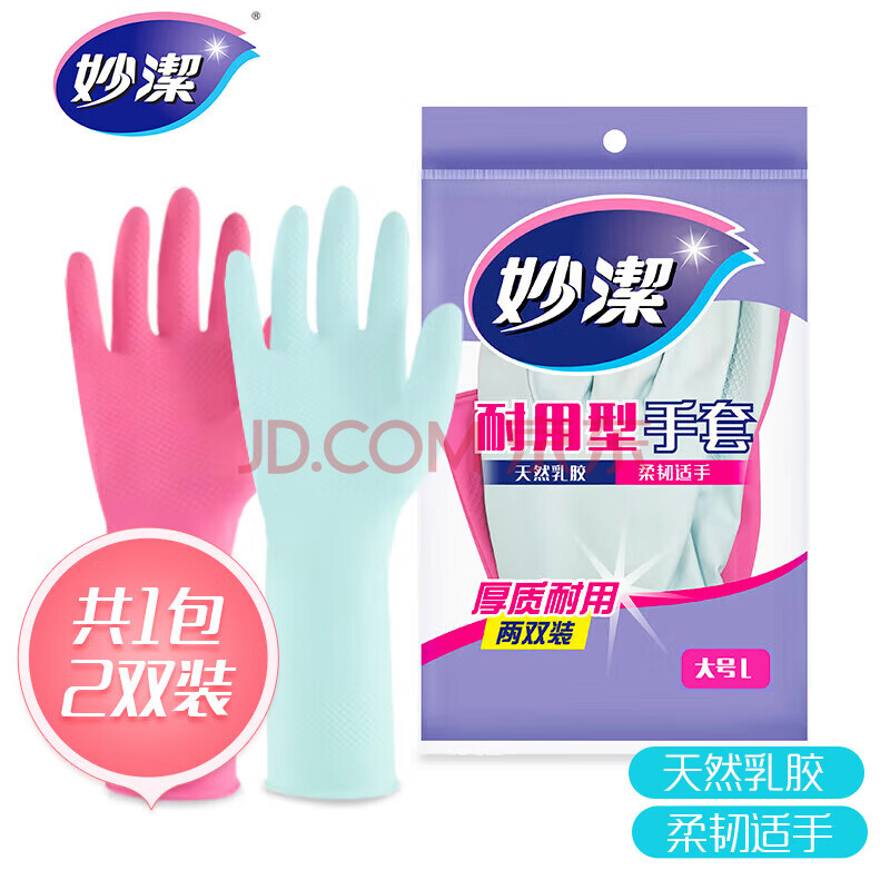 商品相册:妙洁耐用型手套 天然乳胶 2双装 大号L码 洗碗手套多款包装随机发货第