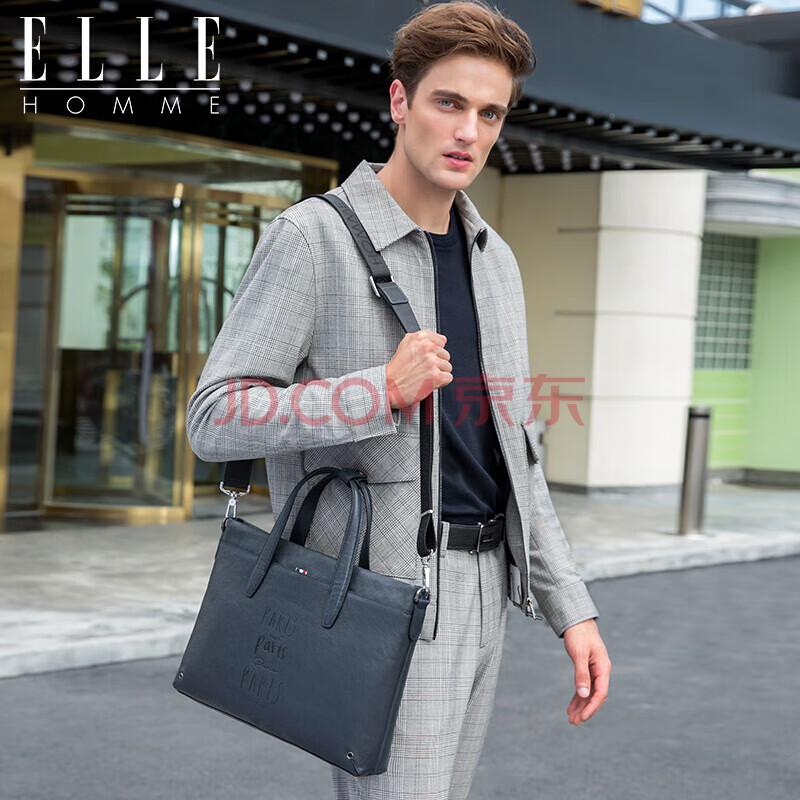 商品相册:ELLE HOMME 男士公文包休闲皮包横款商务手提包潮流多功能电脑包大容量单肩斜挎包 EA888201910 蓝色第