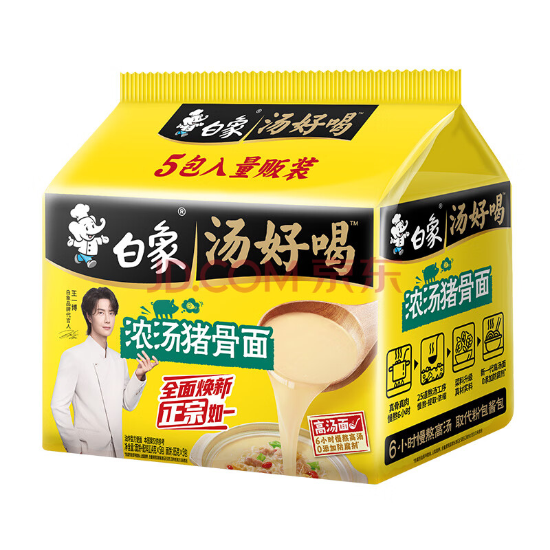 商品相册:白象方便面 汤好喝方便面 浓汤猪骨汤面泡面五合一114g*5包 方便速食第