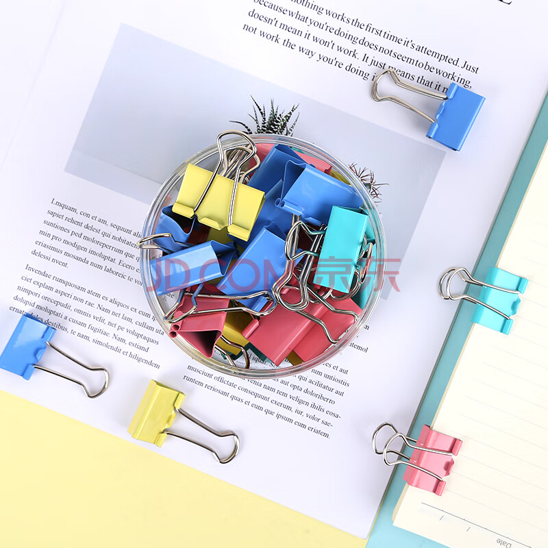 商品相册:西玛(SIMAA)【开学季必备用品】24只32mm彩色长尾夹票夹 金属燕尾夹票据文件夹办公 文具用品24只/筒19881第