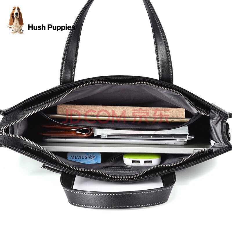 商品相册:暇步士(Hush Puppies) 公文包男头层牛皮男士手提包大容量商务包男包礼物送男友 黑色第