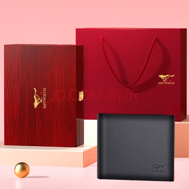 商品相册:七匹狼钱包男士真牛皮卡包证件包木质礼盒送爸爸送男友老公生日实用礼物第