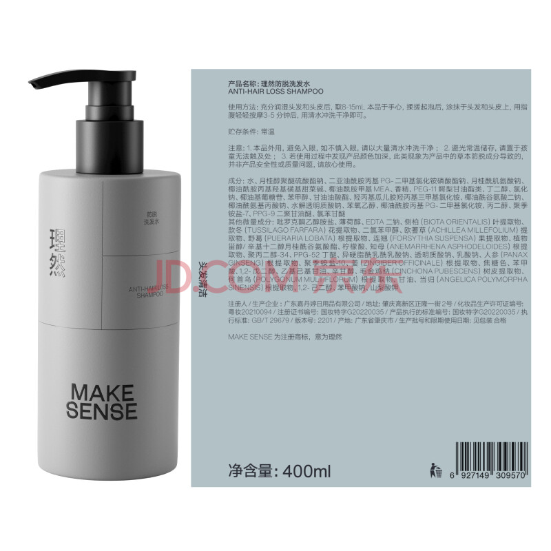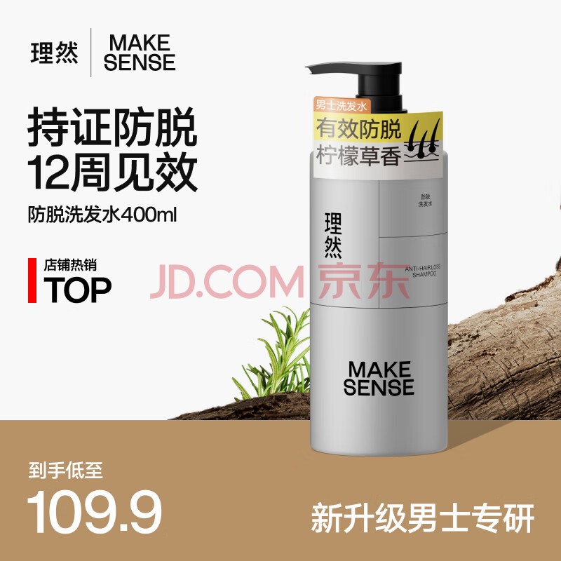 商品相册:理然洗发水男士防掉脱固发洗发露特证控油蓬松健发香氛洗头膏400ml第