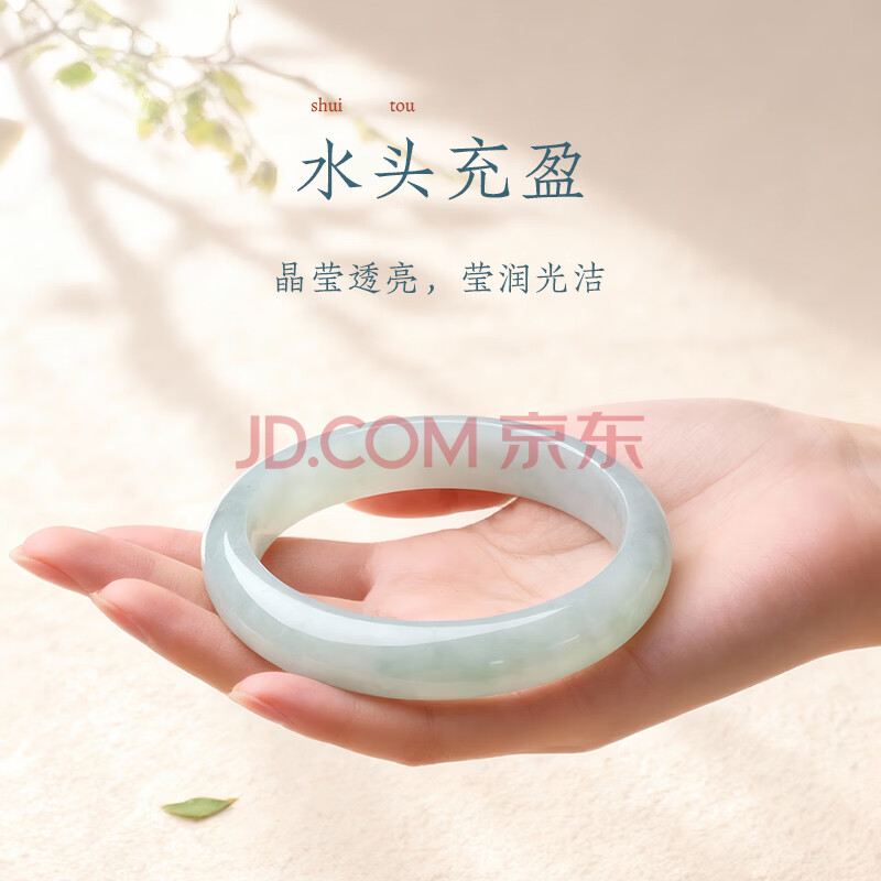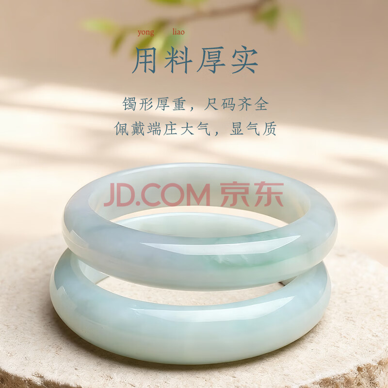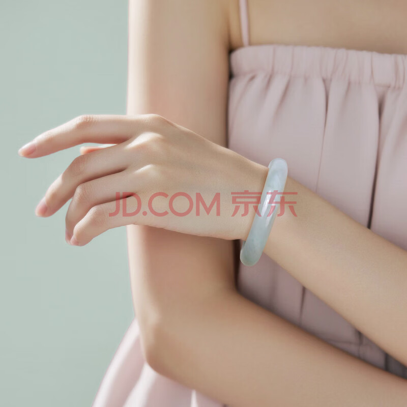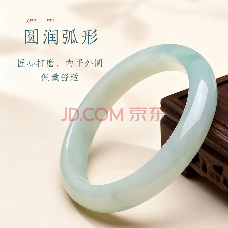 商品相册:印象眸 A货翡翠宽边玉手镯女款飘绿玉镯子内径约61-62mm第