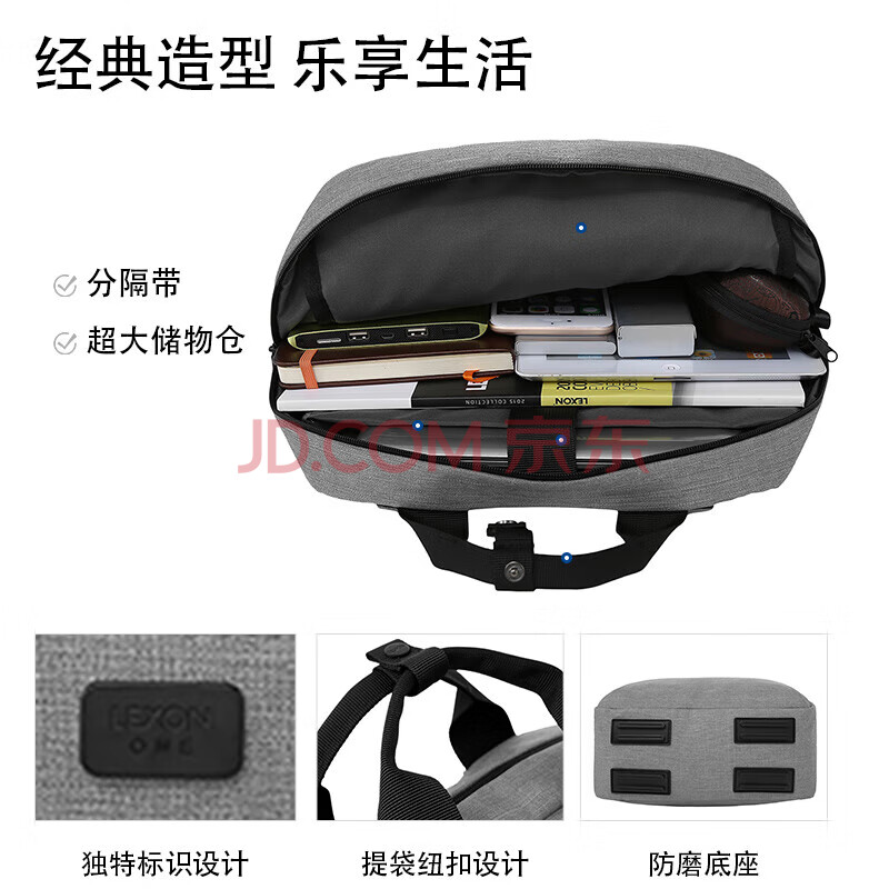 商品相册:乐上(LEXON)双肩包背包14英寸笔记本电脑包男女防泼水单隔层休闲书包 浅灰第