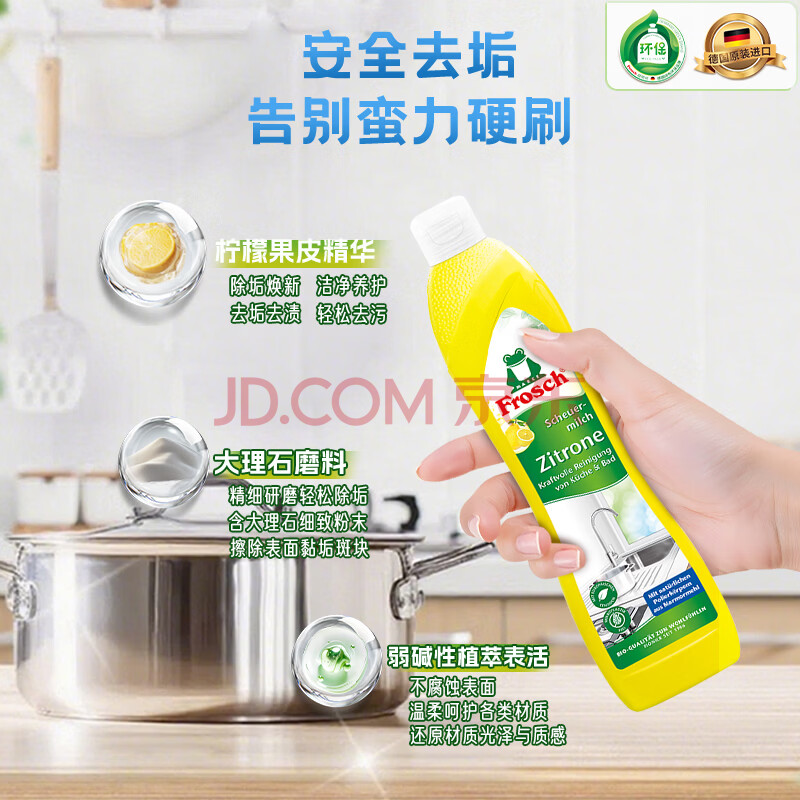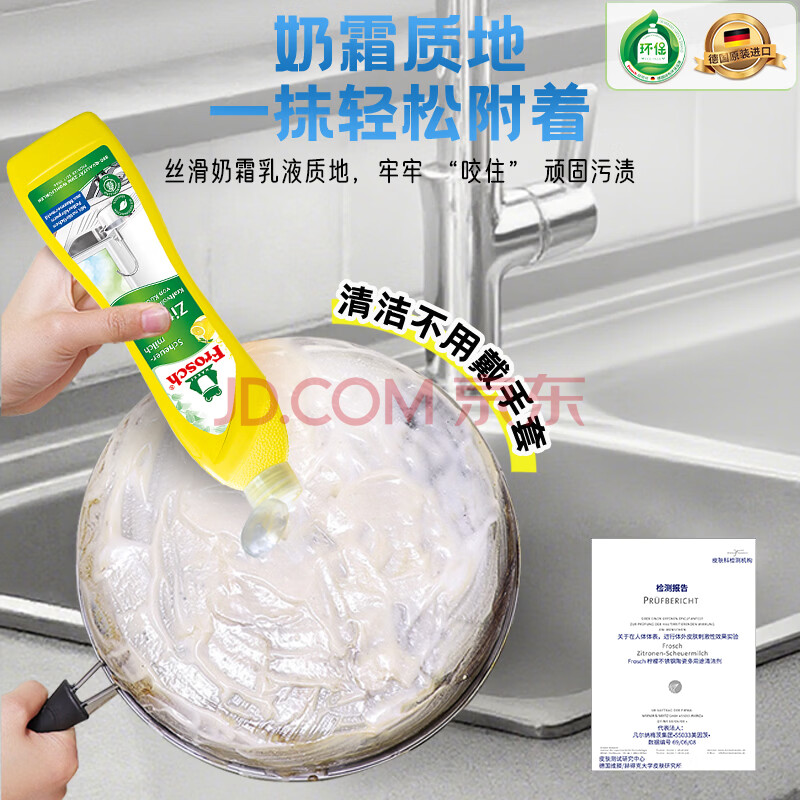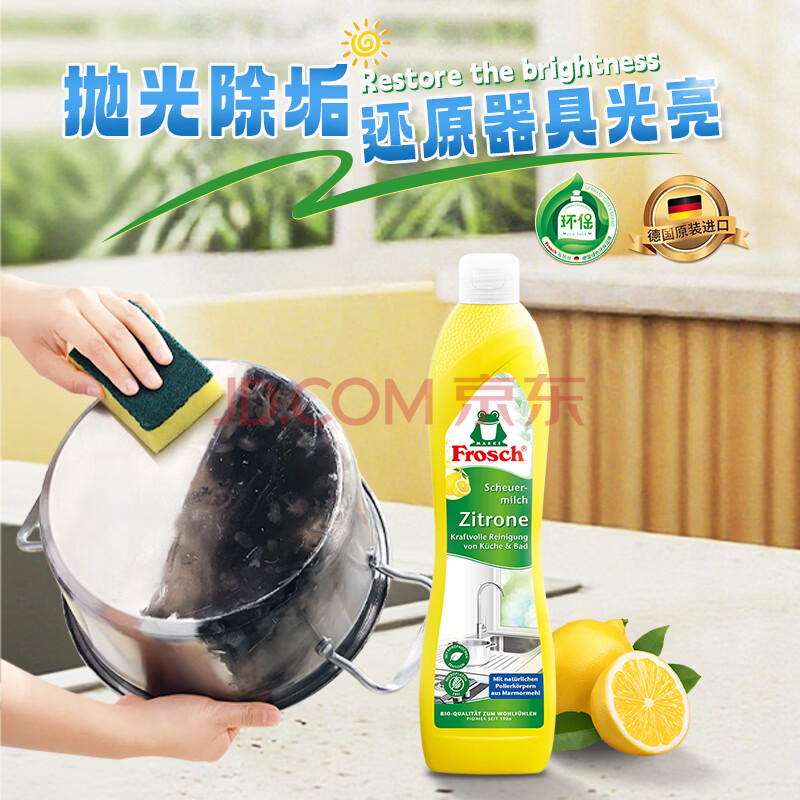 商品相册:Frosch不锈钢/陶瓷清洁剂柠檬 500ml 抛光亮洁 不留划痕 德国原装进口第