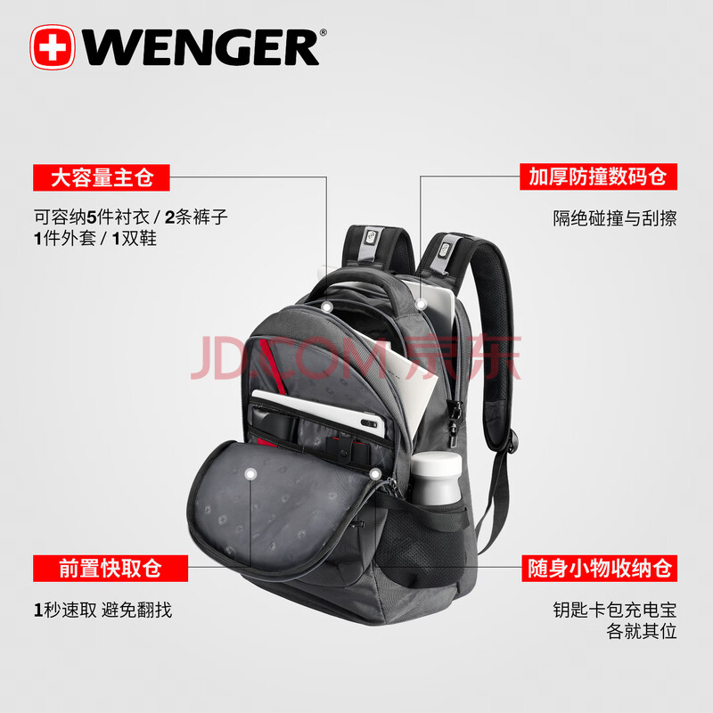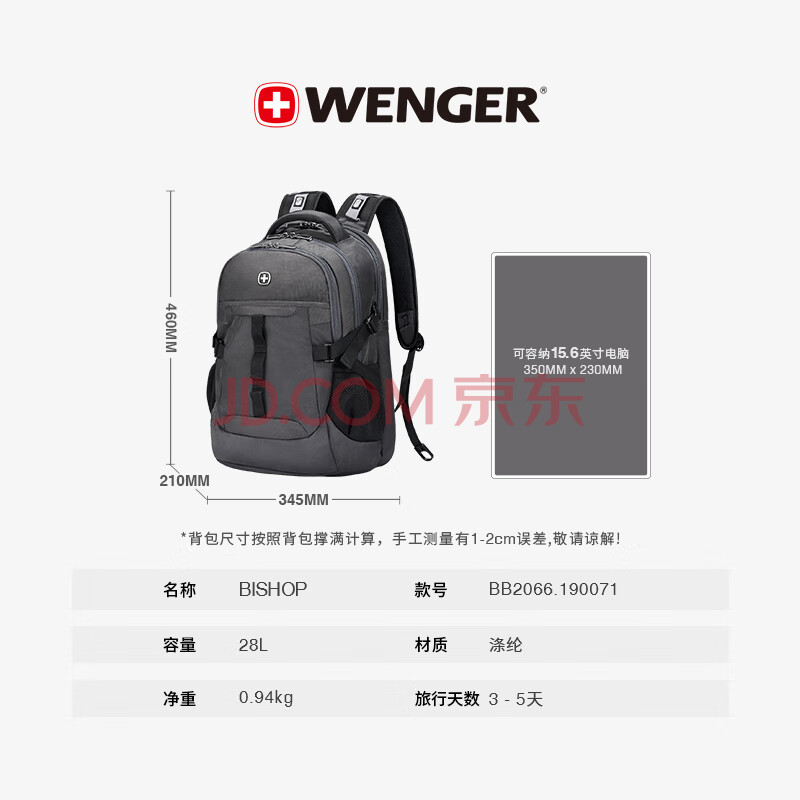 商品相册:威戈15.6英寸笔记本电脑包运动双肩包背包书包大容量男女旅行包第1张/共7