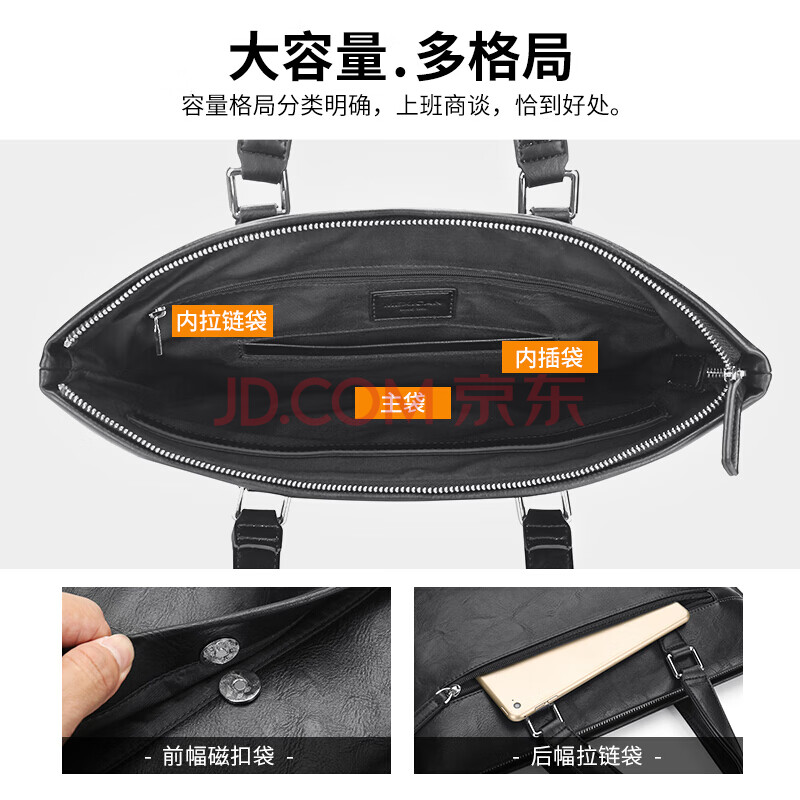 商品相册:稻草人男士公文包商务手提包办公出差律师休闲单肩斜挎14英寸电脑包第