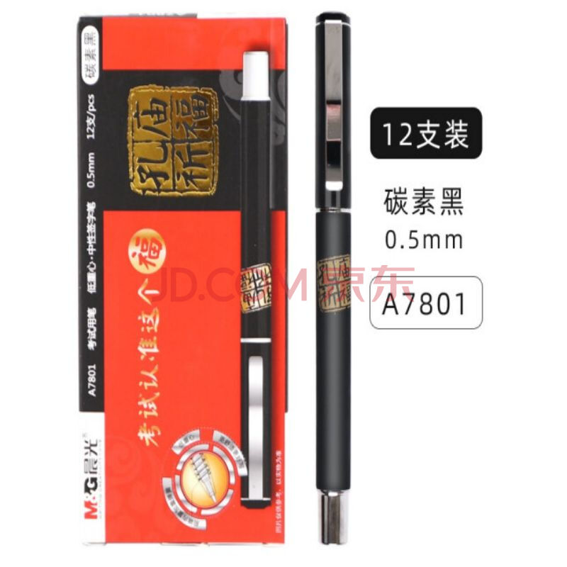 商品相册:晨光孔庙祈福考试专用笔黑色0.5mm笔芯速干中性笔 AGPA7801 黑色0.5mm子弹头 12支/盒 1第