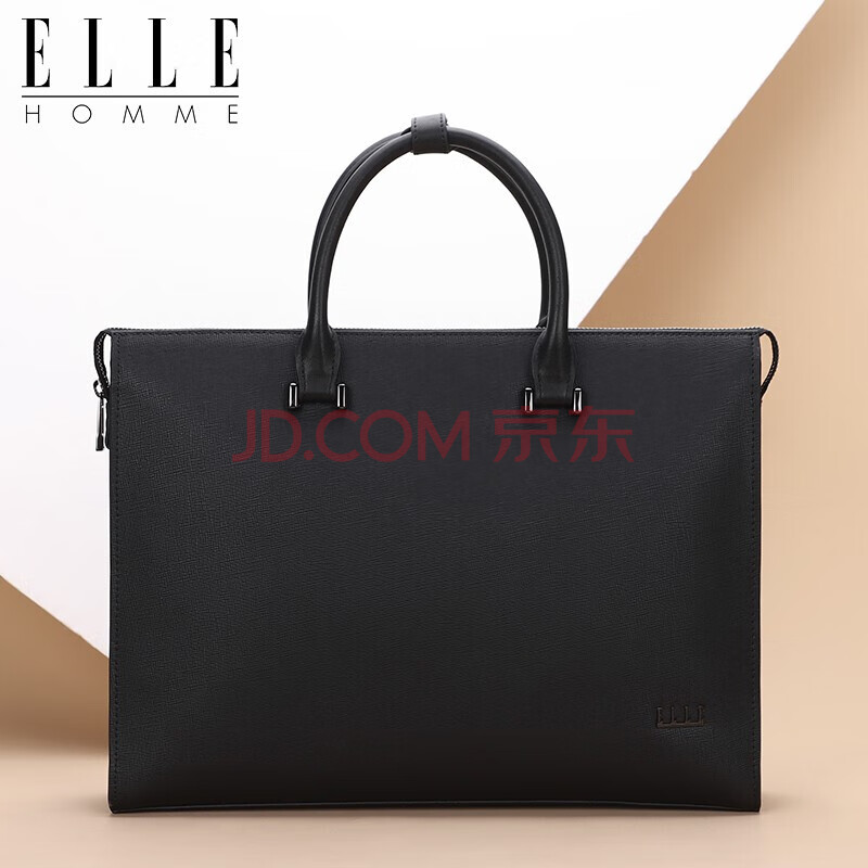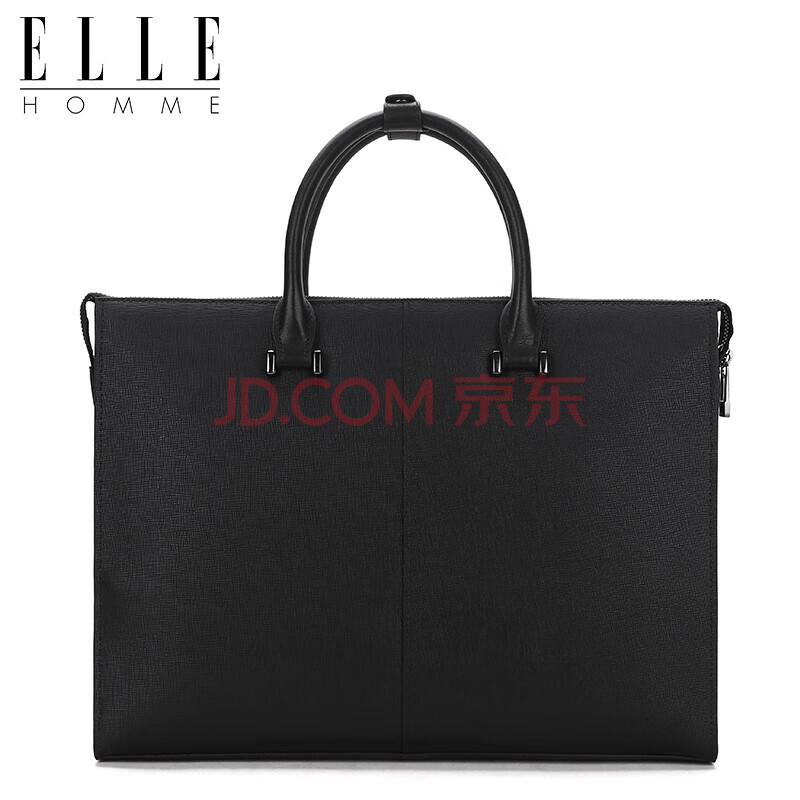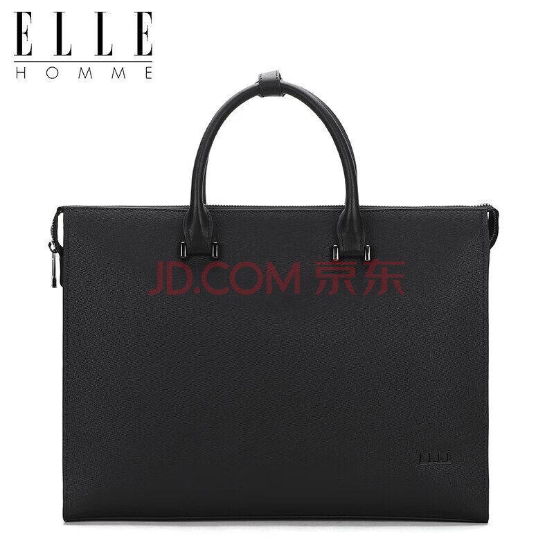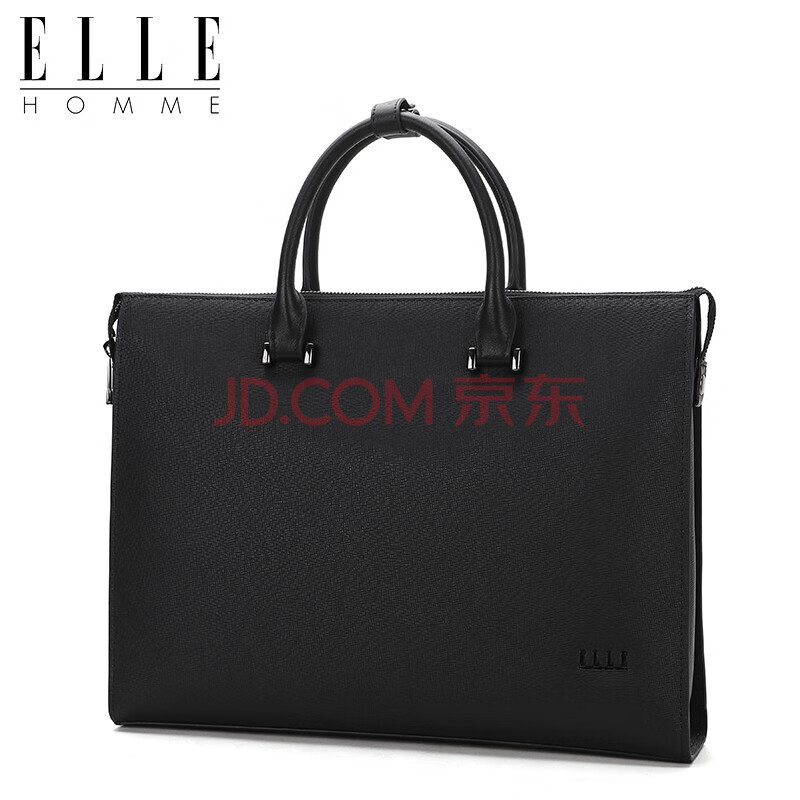 商品相册:ELLE HOMME男士商务公文包 个性时尚横款牛皮手提包 大容量电脑包男包EA088209011黑色第
