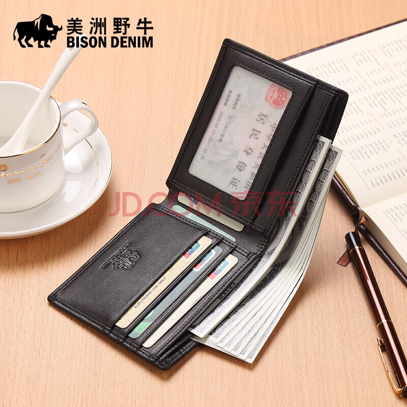 商品相册:美洲野牛男士钱包短款植鞣牛皮钱夹多卡位皮夹生日礼物送男友第
