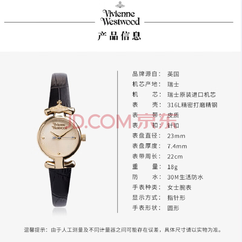 商品相册:Vivienne Westwood西太后手表女士小表盘女生日礼物送女友礼物V090GDBK第