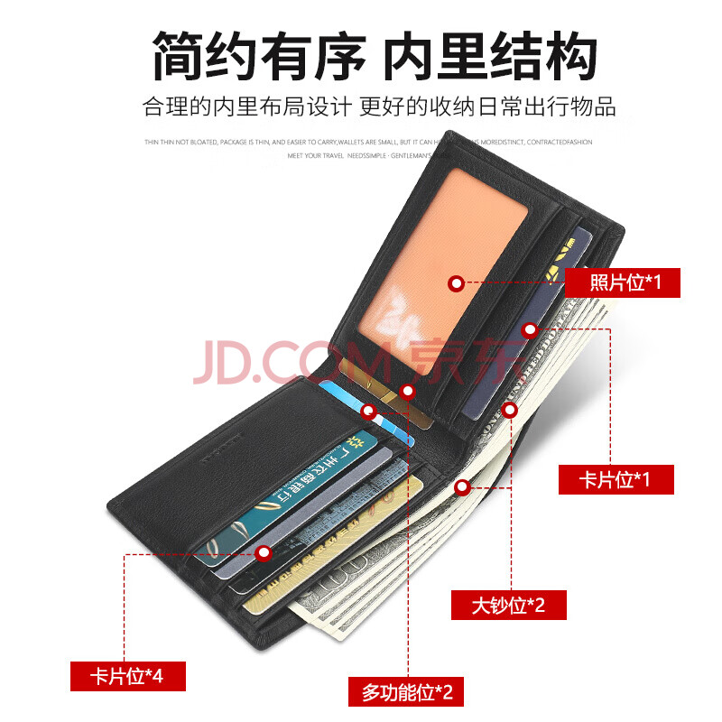 商品相册:稻草人男士钱包短款头层牛皮两折皮夹子银包零钱多卡位卡包生日礼物第