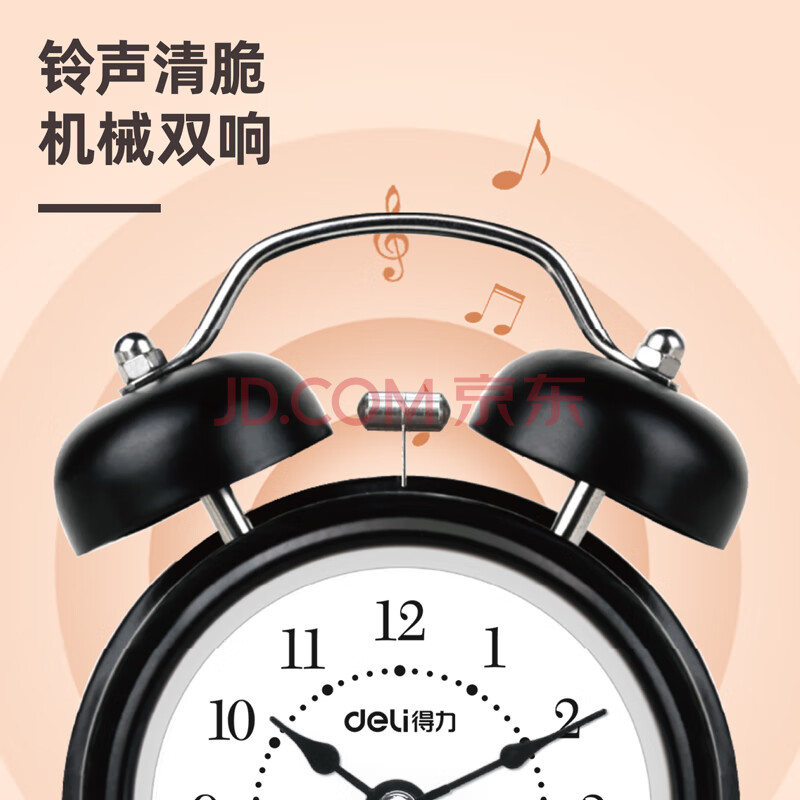 商品相册:得力(deli)迷你复古机械闹钟低噪夜光卧室床头闹钟儿童 学生启蒙闹钟 黑色9024开学开学季新年礼物第