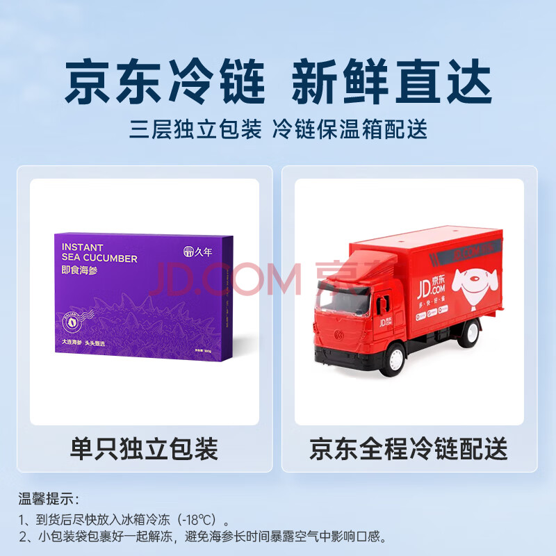 商品相册:久年大连即食海参独立包装京东自营1斤5-7只 辽参海鲜盒装固形物≥85%第