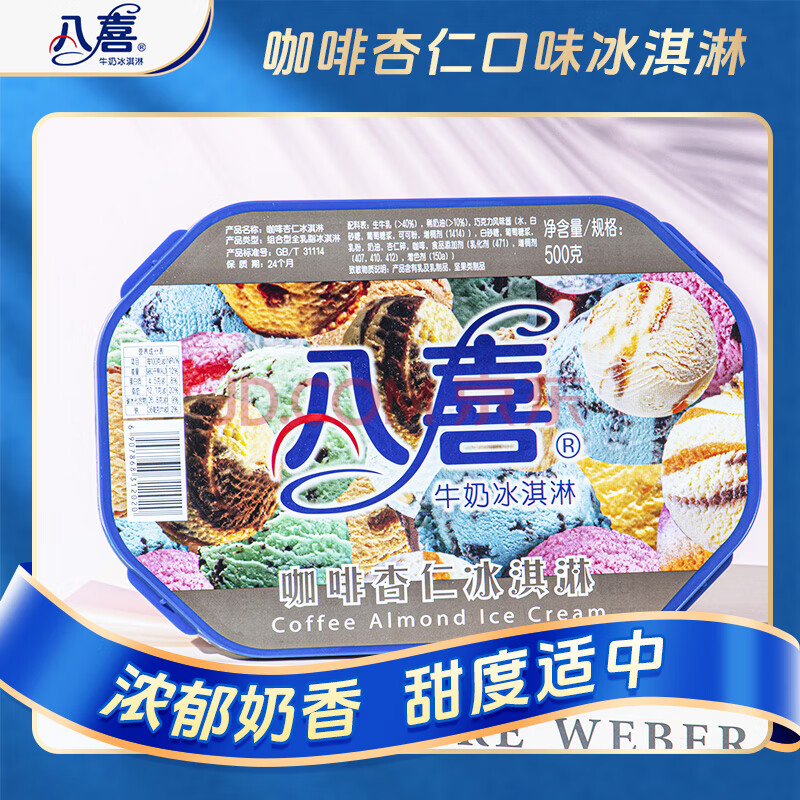 商品相册:八喜冰淇淋 咖啡杏仁口味500g*1盒 家庭装 大杯冰淇淋第