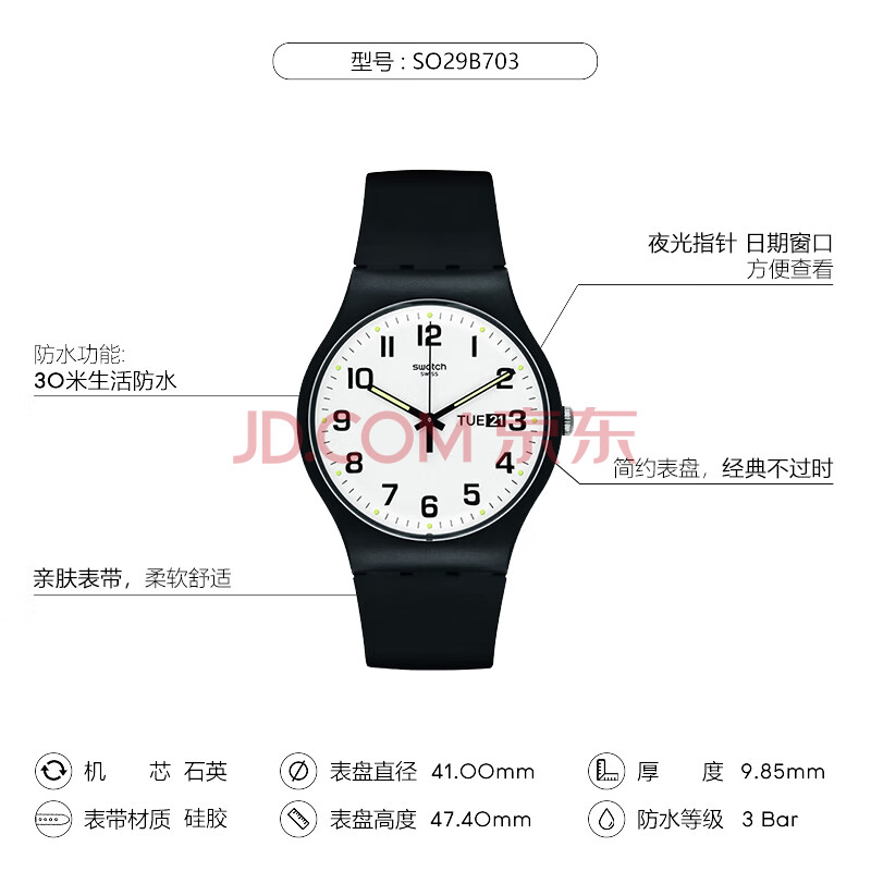商品相册:斯沃琪(Swatch)瑞士手表 二次方2.0 双历生日礼物考试表男女潮流手表 SO29B703第