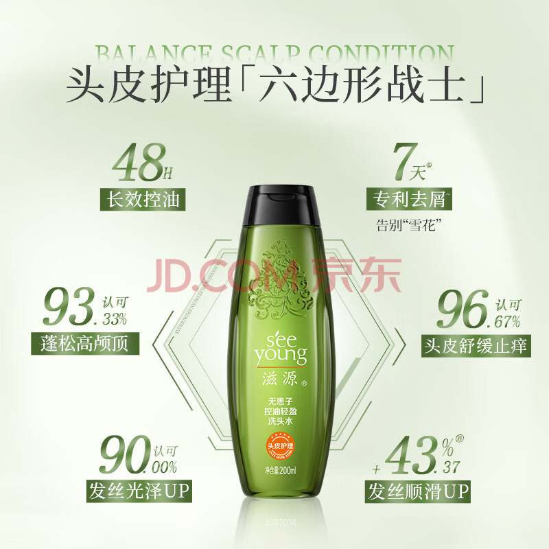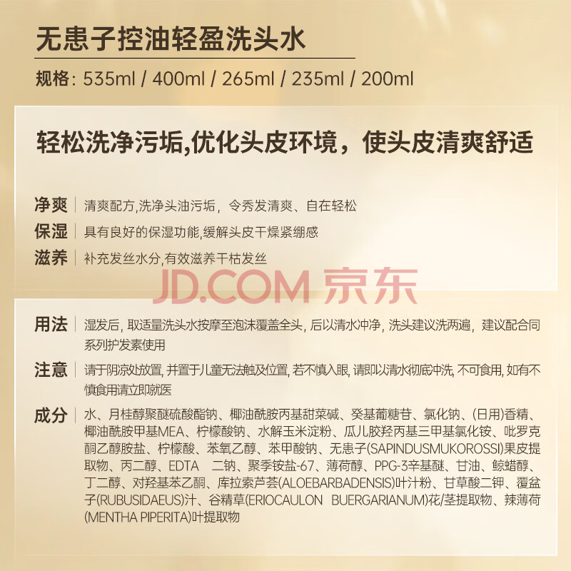 商品相册:滋源无患子控油轻盈洗头水无硅蓬松男女士洗发露200ml第