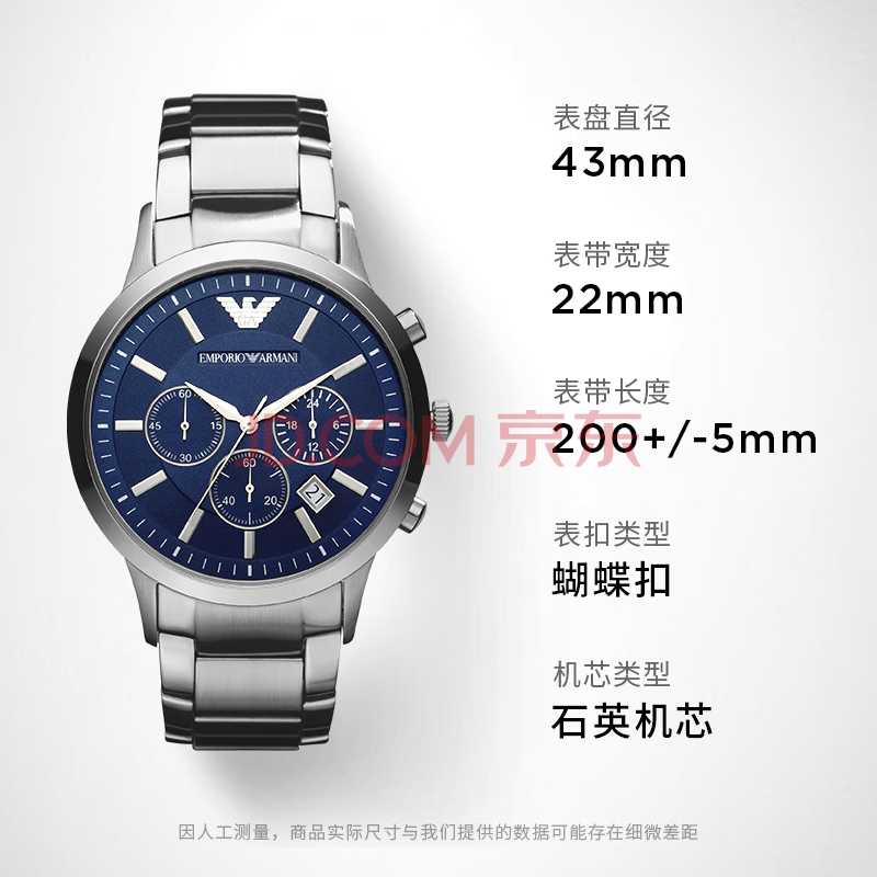 商品相册:EMPORIO ARMANI阿玛尼飞行员系列 三眼计石英手表男士 生日礼物送男友AR2448第