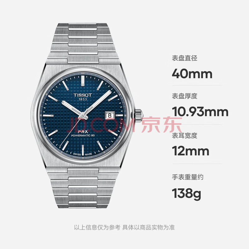 商品相册:天梭(TISSOT) PRX超级玩家系列男表 瑞士机械男士钢带腕表时尚表生日礼物第