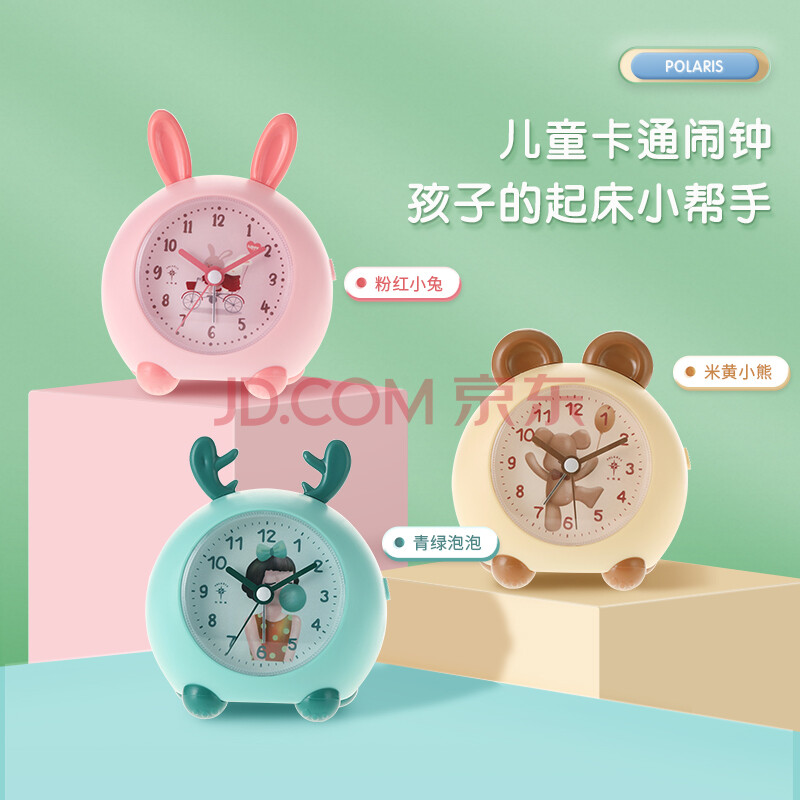 商品相册:北极星(POLARIS)闹钟创意卡通可爱小闹表卡通懒人床头学生儿童电子钟 粉色【开学季】第