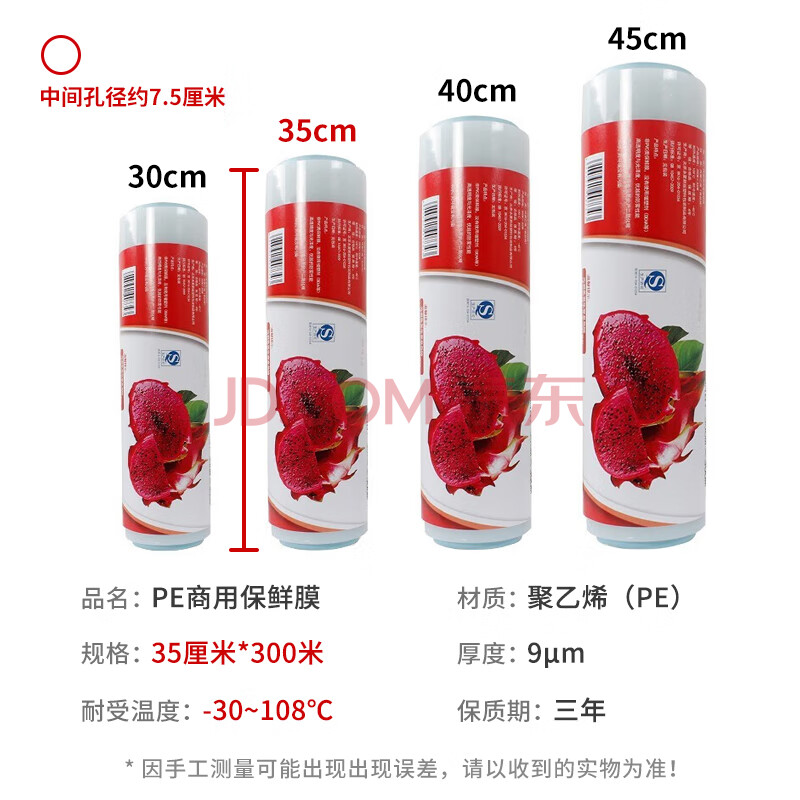 商品相册:京惠思创PE食品级保鲜膜超大卷【300m*35cm】生鲜保鲜膜手撕食品膜 JH0093第