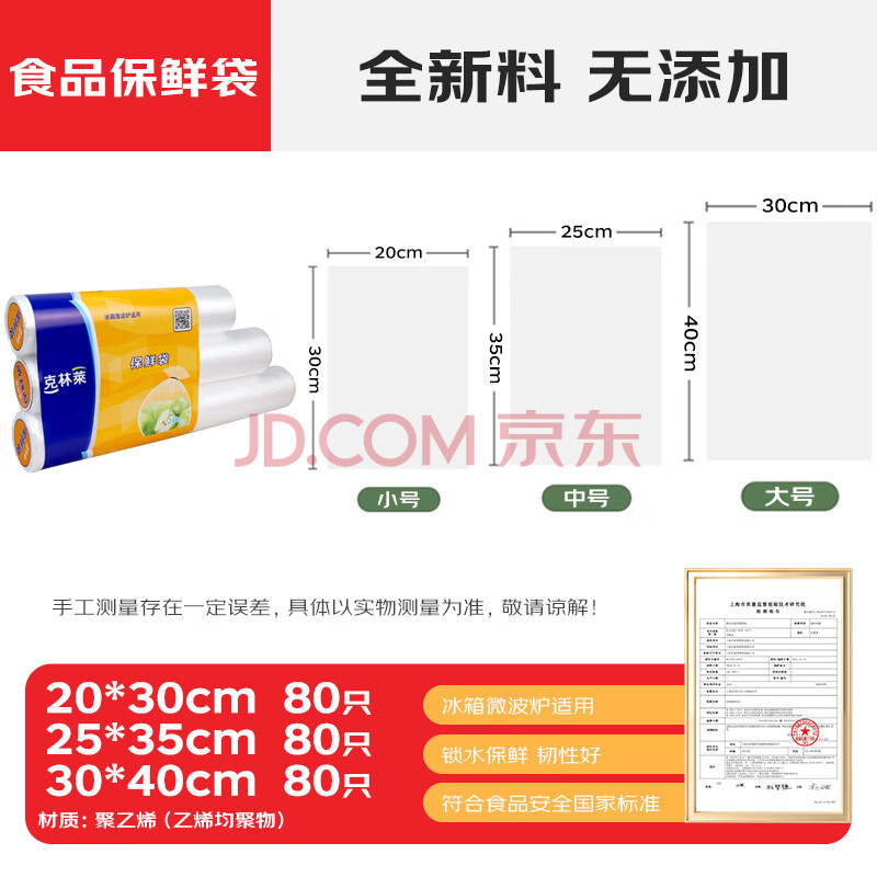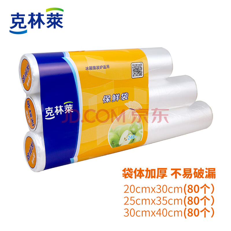 商品相册:克林莱一次性保鲜袋食品袋大号80只中号80只小号80只共240只超值组合装第