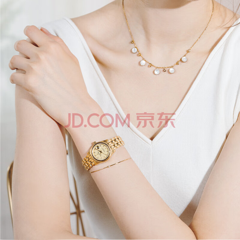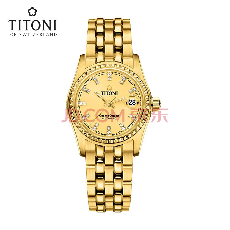 商品相册:梅花(Titoni)瑞士手表 宇宙系列自动机械金色钢带女士腕表27mm729-G-306礼物第