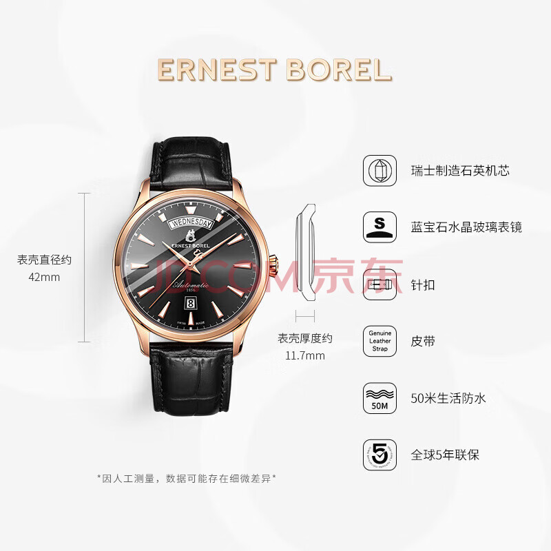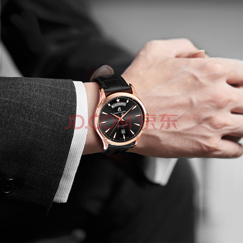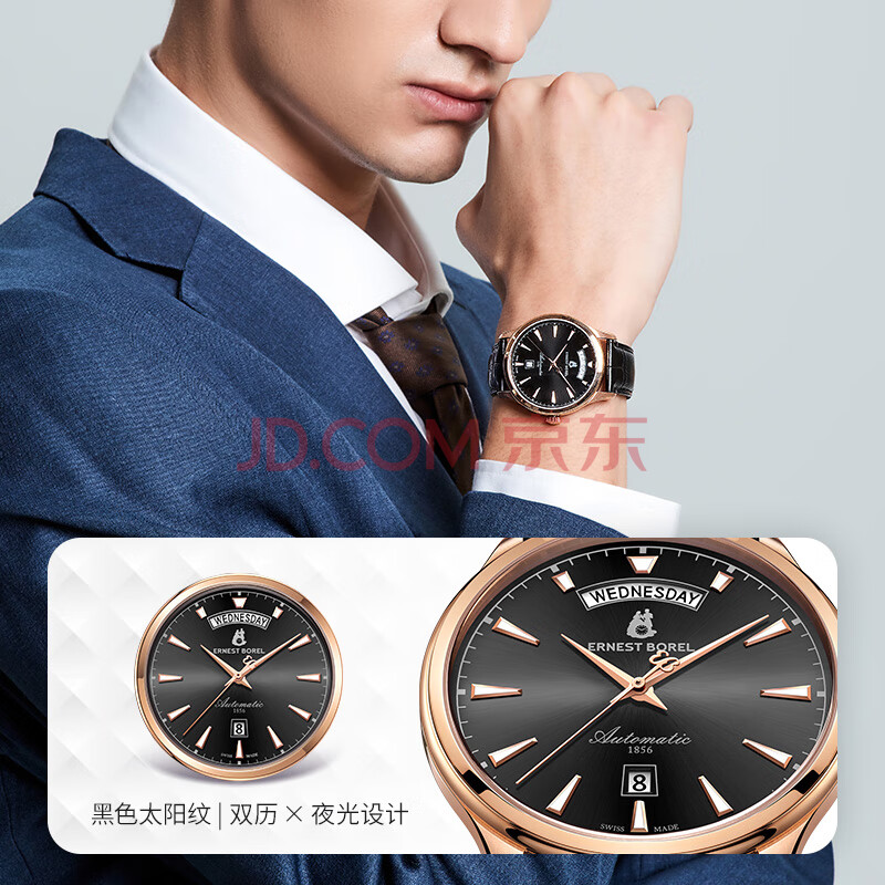 商品相册:依波路(ERNEST BOREL)瑞士手表男 复古系列男士腕表夜光双日历自动机械皮带手表送男友第