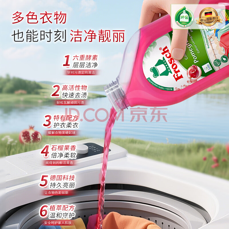 商品相册:Frosch石榴果固色洗衣液 1.5L*2 护色防串色 德国进口(新老款更替)第