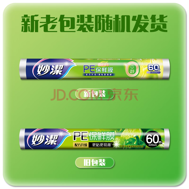 商品相册:妙洁 一次性保鲜膜 粘性升级卫生易撕 大号经济装60米*30cm 非点断式第