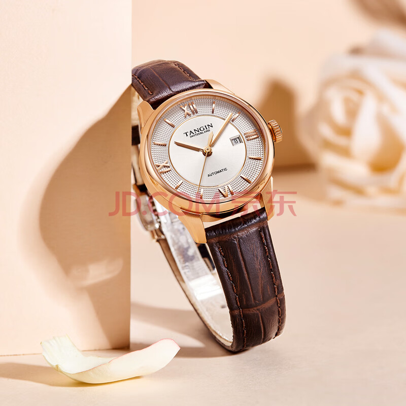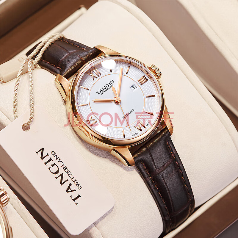 商品相册:天珺(TANGIN)瑞士进口女士手表时尚皮带全自动机械瑞表女送女友 T7029LHWFSB第