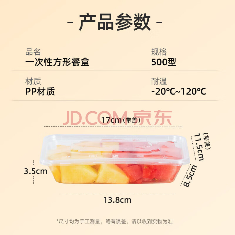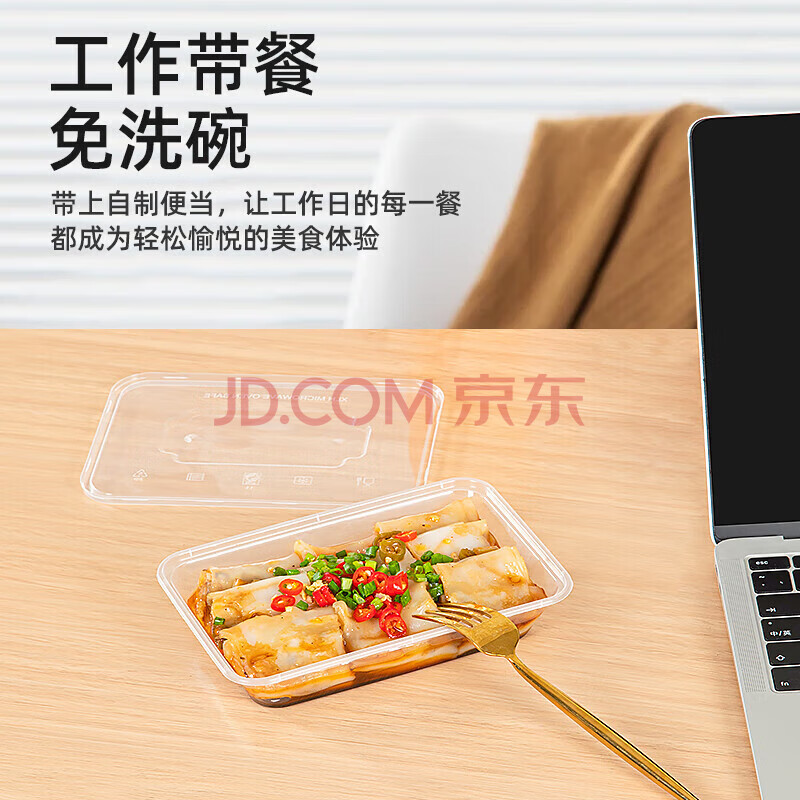 商品相册:特美居(temeiju)一次性饭盒长方形透明塑料快餐盒加厚带盖打包盒餐具50套装500型第