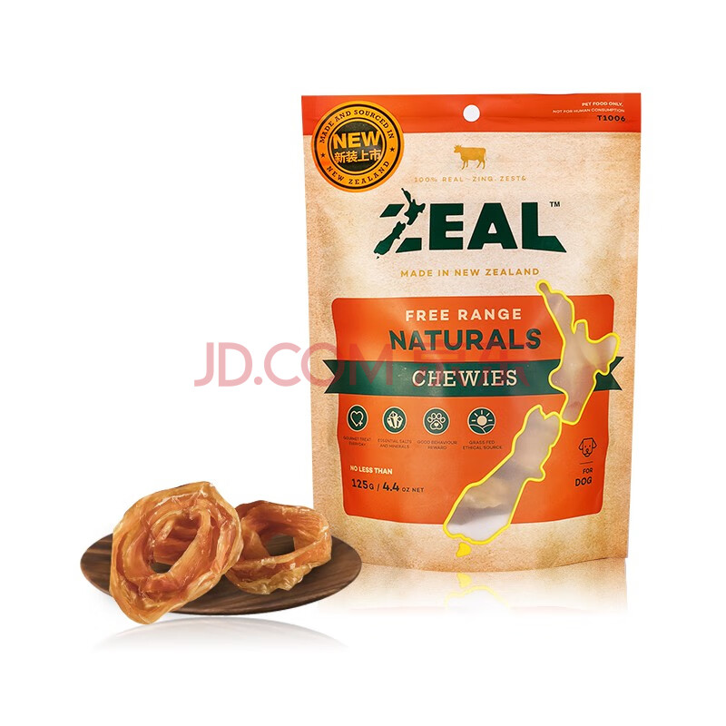 商品相册:ZEAL真致新西兰进口狗零食风干小牛筋圈125g磨牙洁齿肉干成犬宠物第1张/共8