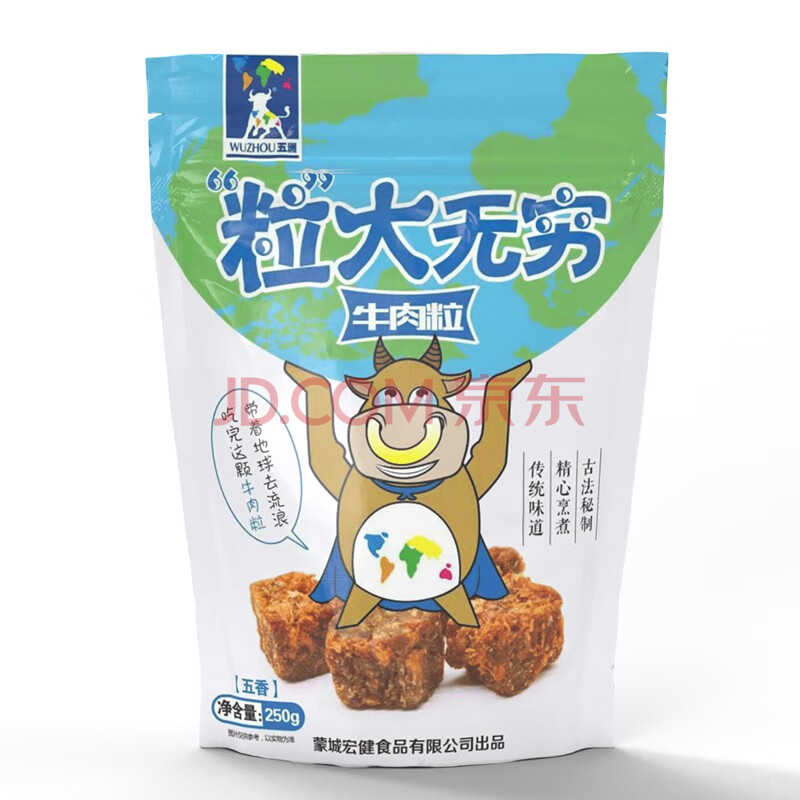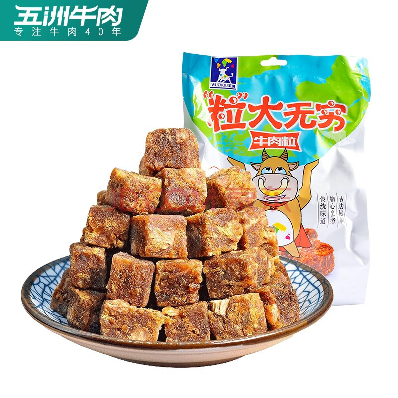 商品相册:五洲 五香牛肉粒250g 量贩装 休闲零食 独立小包装 牛肉干肉脯第