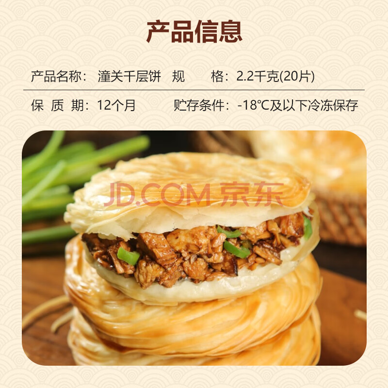 商品相册:华田禾邦 潼关千层饼 2.2kg 20片 无起酥油肉夹馍饼胚 速食早餐半成品第