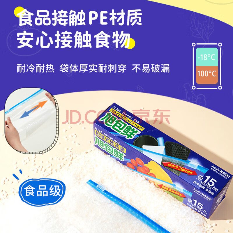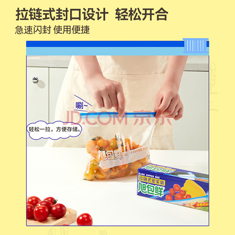 商品相册:旭包鲜拉链式食品保鲜密实袋密封袋自封袋 中号*2共30只第