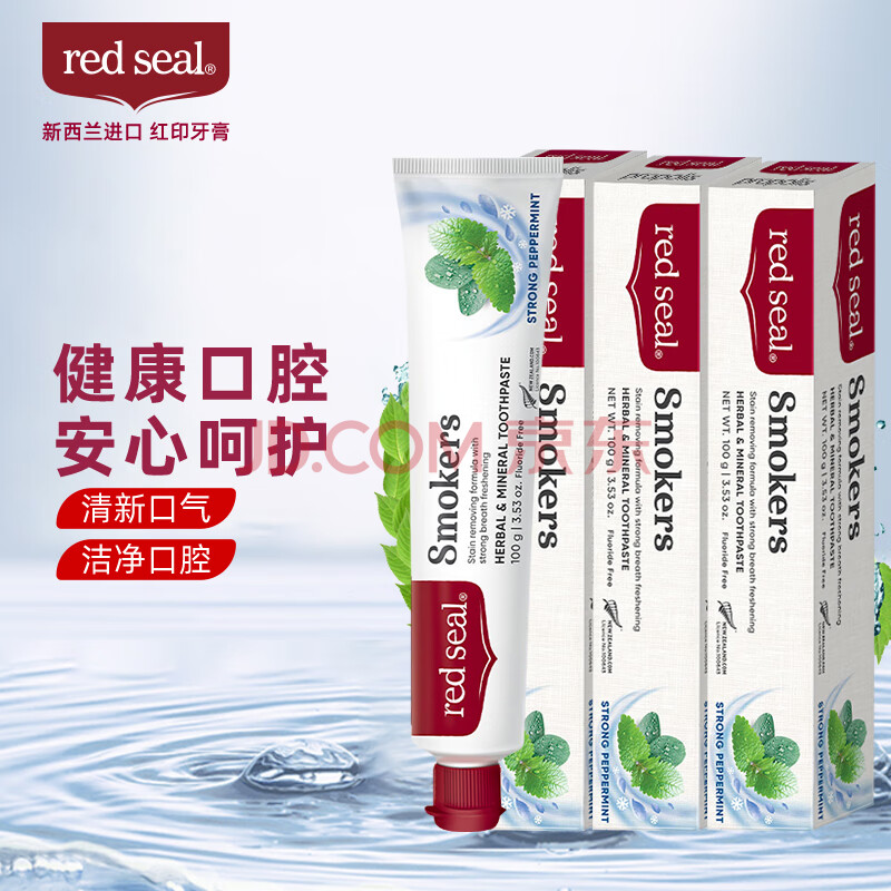 商品相册:红印(Red seal)新西兰进口烟民薄荷牙膏100g*3支装 无氟烟民牙膏双重薄荷味第