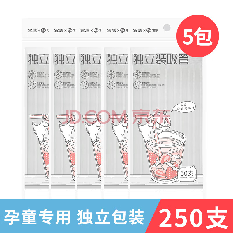 商品相册:宜洁(yekee) 一次性吸管独立包装250只 孕妇儿童食品级吸管 JD-7060第