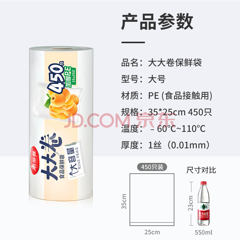 商品相册:美丽雅保鲜袋食品级 大号加厚450只 一次性可冷冻食物收纳塑料袋第