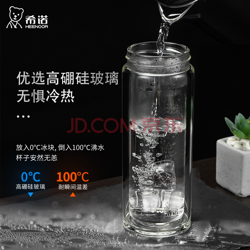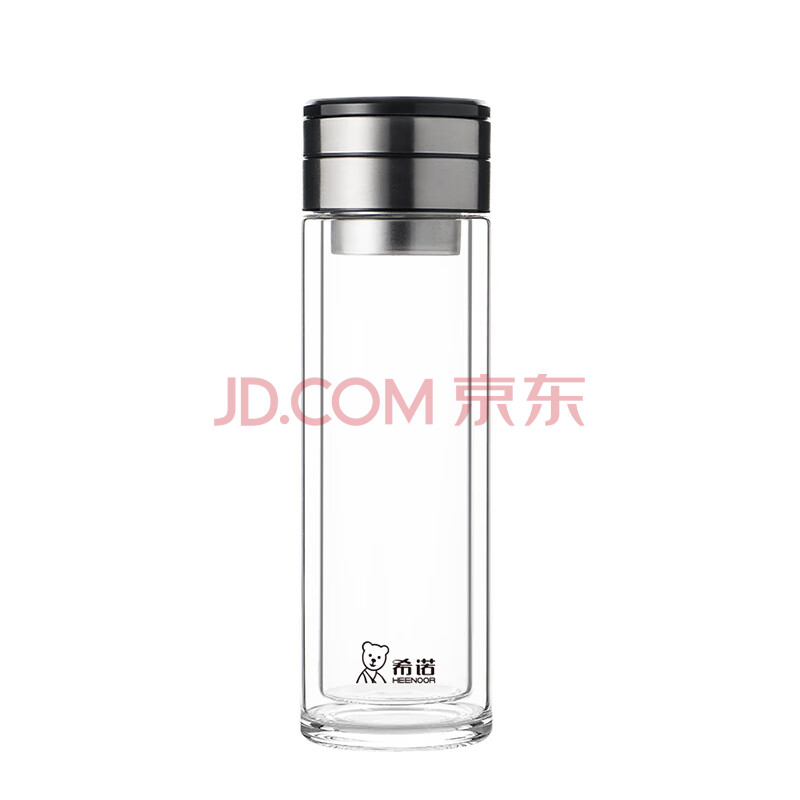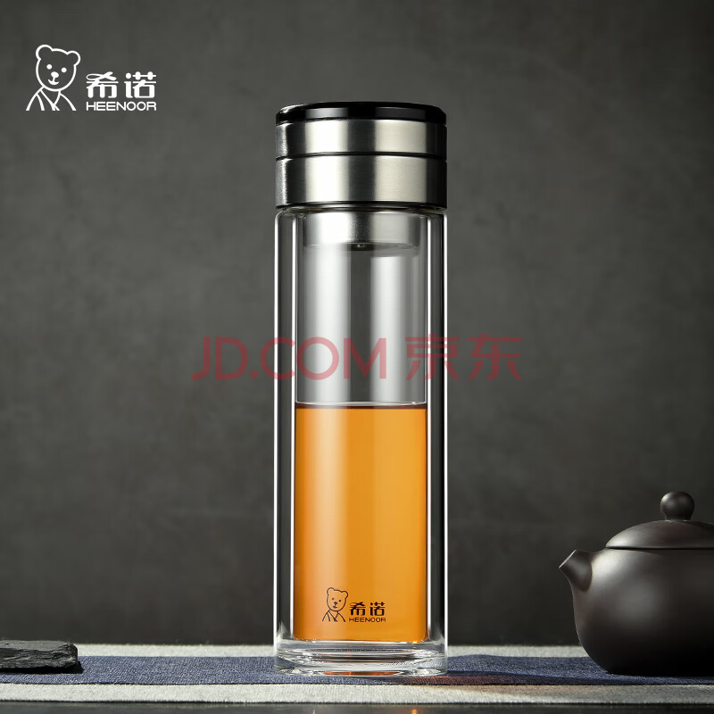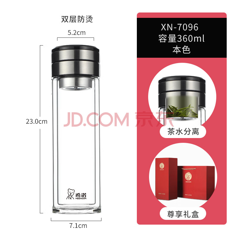商品相册:希诺茶水分离玻璃杯子双层防烫泡茶杯子男车载水杯XN-7096本色 360mL第