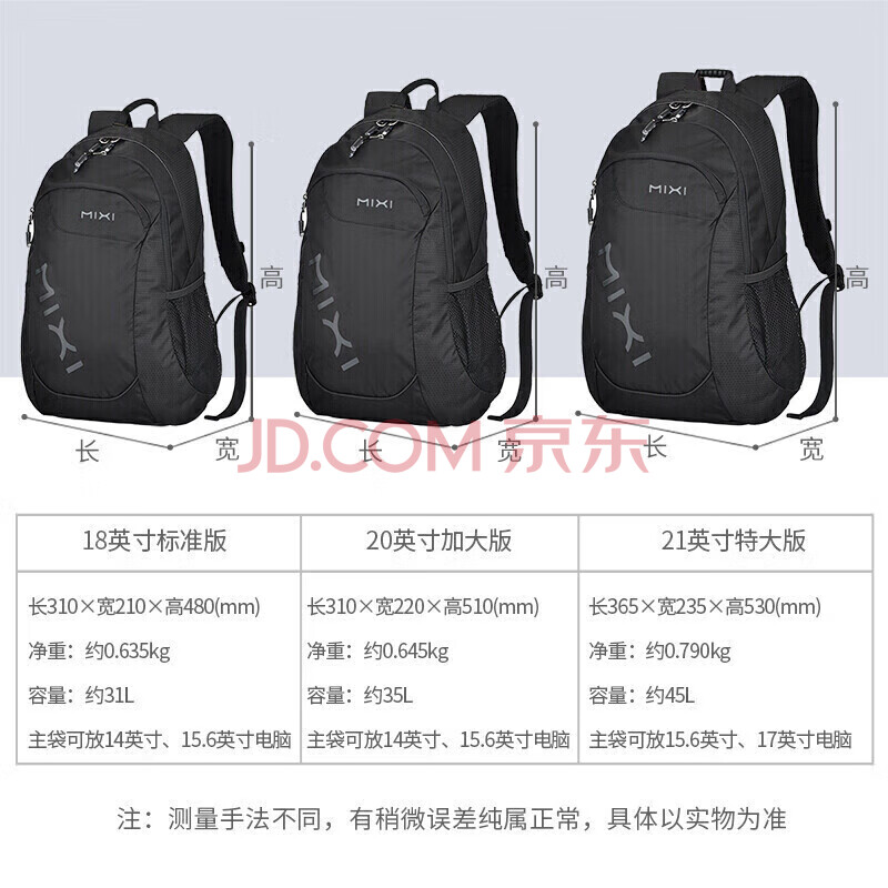 商品相册:米熙休闲运动双肩包旅行包女14英寸电脑包大容量旅行包背包旅游超轻便第1张/共7