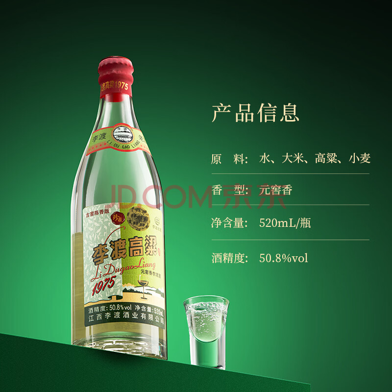 商品相册:李渡 高粱1975 元窖香型白酒 50.8度 520ml 单瓶装 江西特产第
