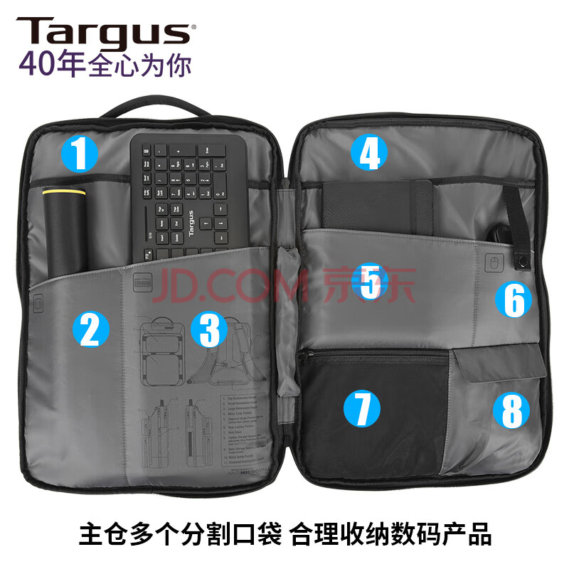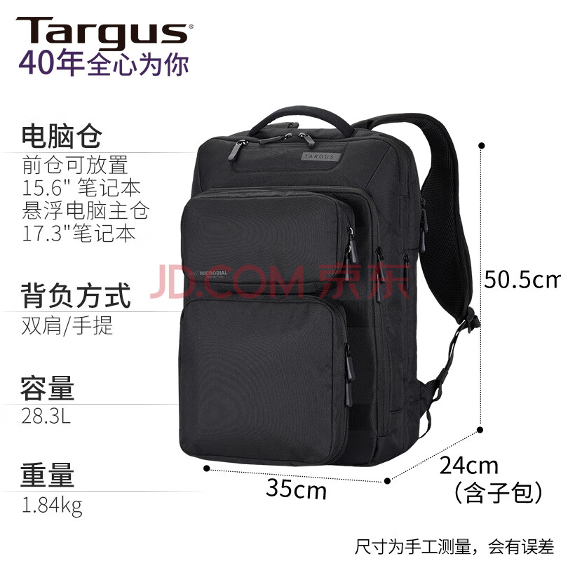 商品相册:泰格斯(TARGUS)通勤电脑包双肩包15.6/17.3英寸商务背包旅行包男女书包 黑 615第