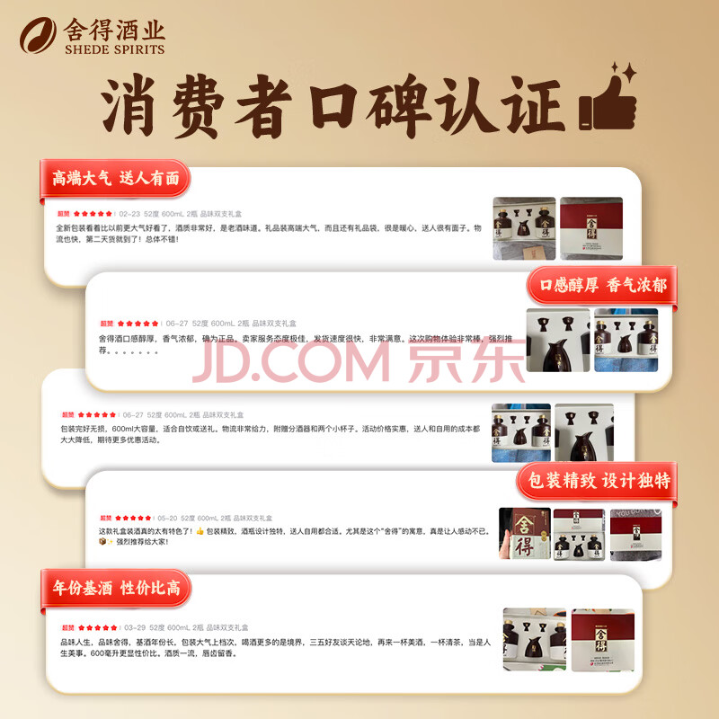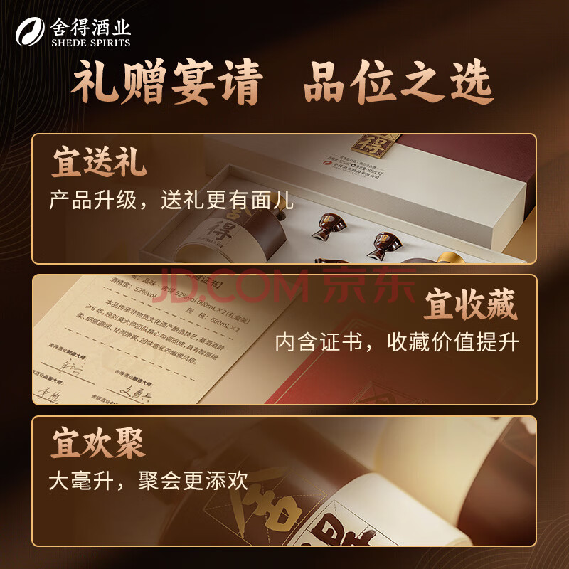 商品相册:舍得 品味舍得 浓香型白酒 52度 600ml*2瓶*3盒 整箱装 节日送礼礼物第