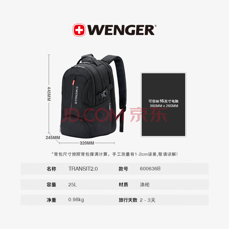 商品相册:威戈16英寸笔记本电脑包商务双肩包背包书包出差男女旅行包第